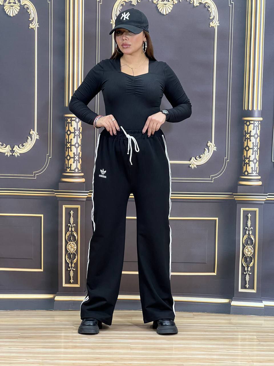 شلوار گلکسی چاپ دار مشکی اسپورت